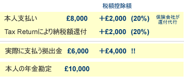 例:40%の所得税を支払っている方が10,000ポンドの年金拠出をする。